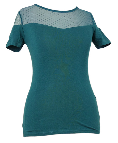 Dámske zelené tričko s tylovým vzorovaným výstřihem Terranova