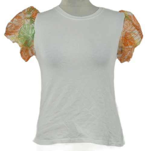 Dámske biele tričko s kvetovanymi rukávy