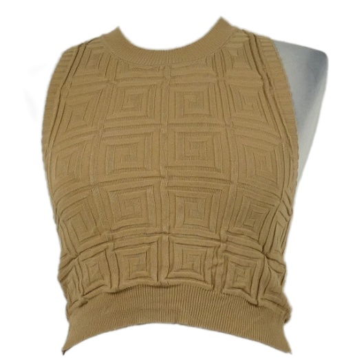 Dámsky béžový vzorovaný úpletový crop top Shein
