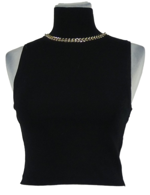 Dámsky čierny crop pletený top s retiazkou Zara