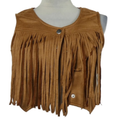 Dámska hnedá semišová crop vesta s strapcemi