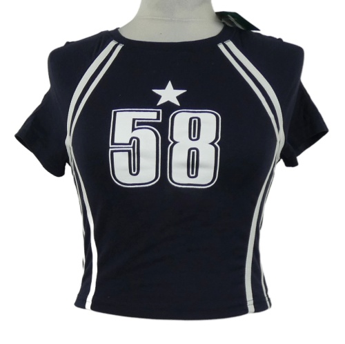 Nové - Dámske tmavomodré crop tričko s číslom Shein