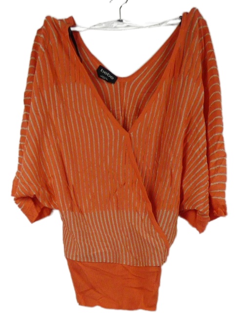 Dámske oranžovo-zlaté pruhované úpletové voľné é tričko Bebe