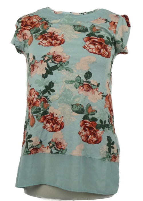 Dámske svetlomodré kvetované tričko s šifonovým volánem George