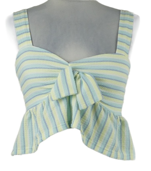 Dámsky modro-zelený pruhovaný crop top s mašlou Primark
