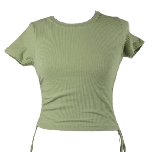 Dámske světlekhaki rebrované crop tričko so stahováním