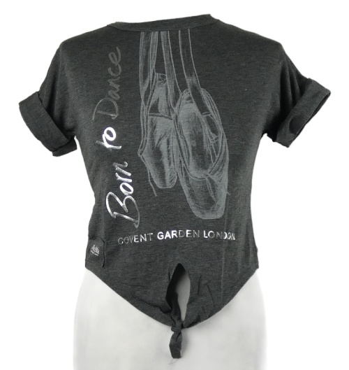 Nové - Dámske tmavosivé crop tričko s baletními piškoty a uzlom Miss Ellie