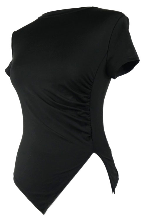 Dámske čierne crop tričko s řasením Shein