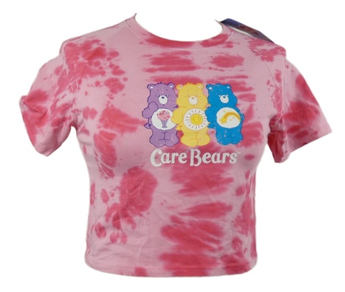 Nové - Dámske ružovo-tmavoružové batikované crop tričko s medvedíkmi