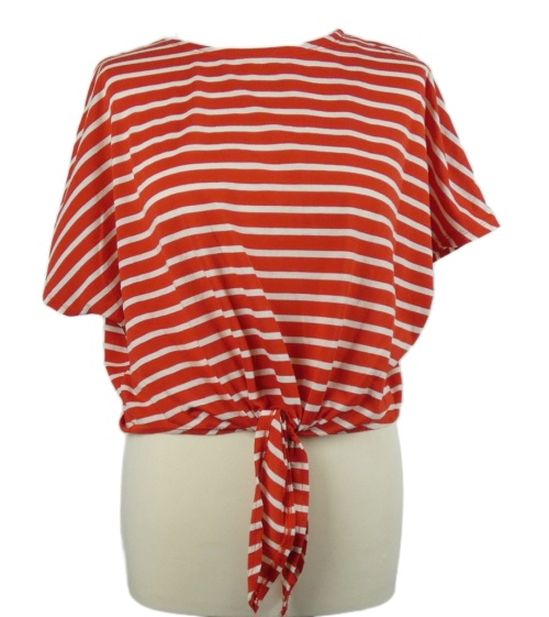 Dámske červeno-biele pruhované crop tričko s uzlom Primark