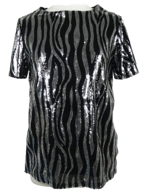 Dámske čierno-strieborné vzorované flitrové tričko TU