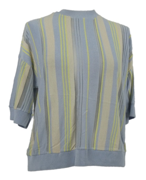 Dámsky světlemodro-žlté pruhované pletené tričko MNG