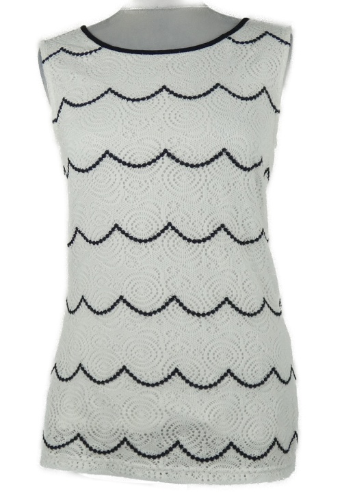 Dámsky bielo-čierny vzorovaný čipkový top Roman