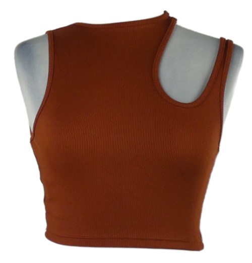 Dámsky skořicový rebrovaný crop top s prestrihom Shein