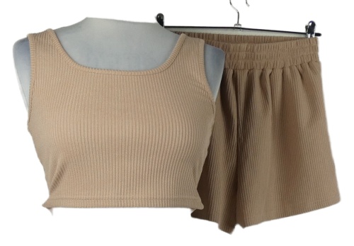 2set - Dámsky pudrový rebrovaný crop top + kraťasy