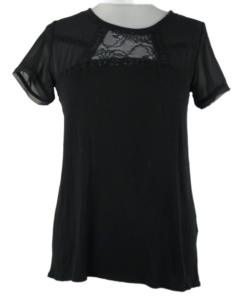Dámske čierne tričko s krajkovým výstřihem H&M