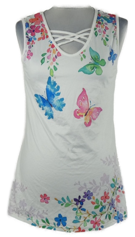 Dámsky biely top s motýlikmi a zkříženým výstřihem