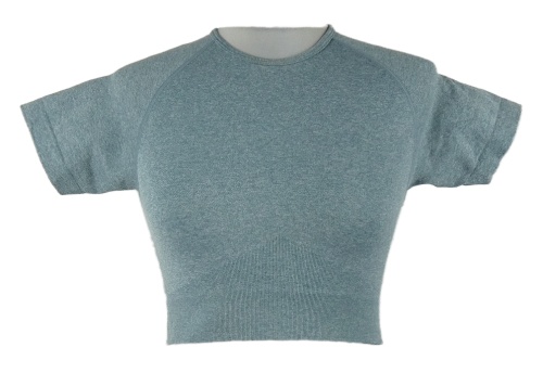 Dámske modrošedé melírované športové crop tričko Bo+Tee