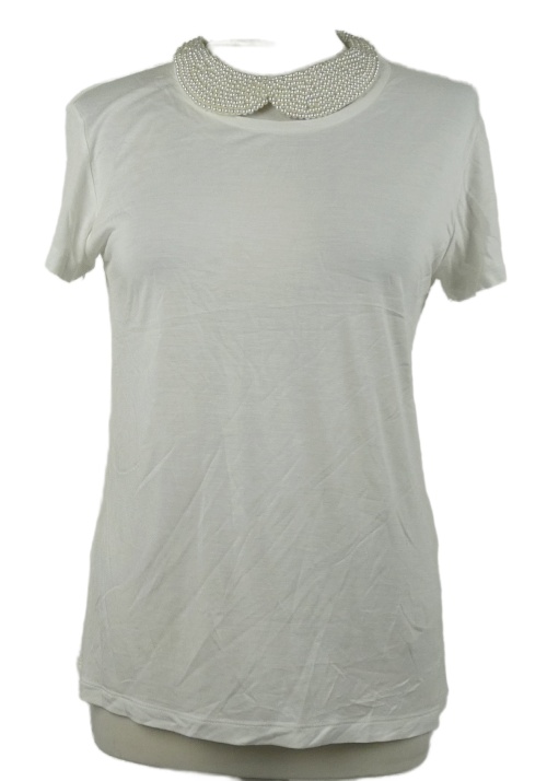 Dámske biele tričko s korálkovým golierikom