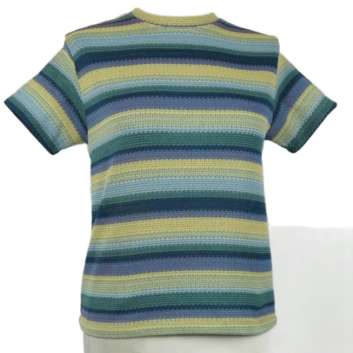 Dámske modro-zeleno-žlté pruhované úpletové tričko Arhee