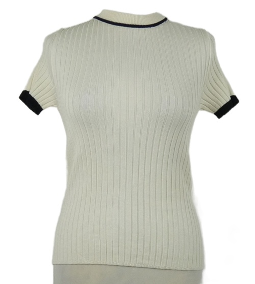 Dámske smotanové rebrované pletené tričko s černým lemem Anko