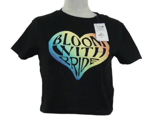 Nové - Dámske čierne crop tričko so srdíčkem z nápisom Primark