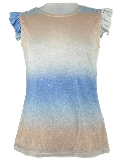 Dámske modro-béžová trblietavá tónová blúzka s volánikmi