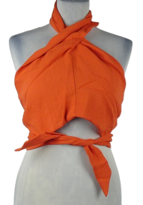 Dámsky oranžový crop zavinovací top s volnými zády H&M