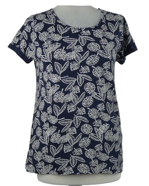 Dámske tmavomodro-biele kvetované tričko s kamienkami Dorothy Perkins