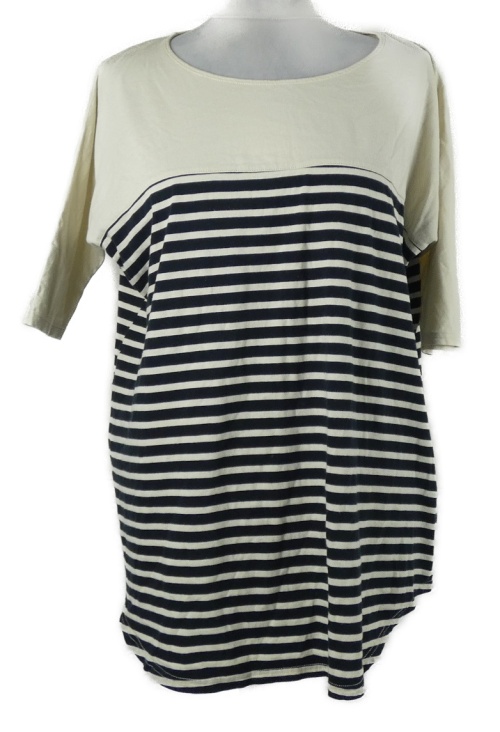 Dámske béžovo-tmavomodré pruhované voľné é tričko BDG