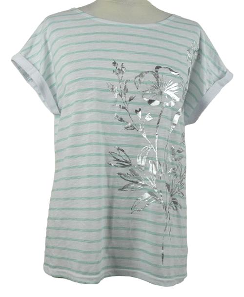 Dámske bielo-mátové pruhované tričko s kvetmi Bonmarché