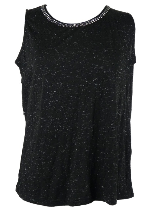 Dámsky čierny melírovaný top s volánky na zádech a kamienkami M&S