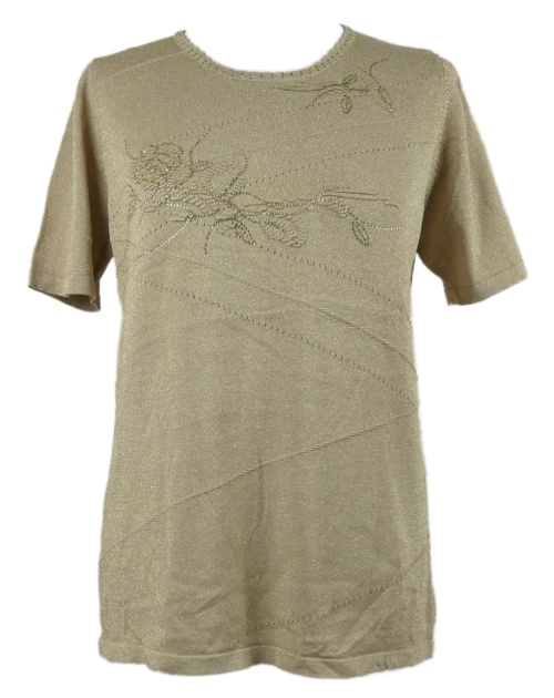 Dámske béžové trblietavé úpletové tričko s kvetmi Ovanti
