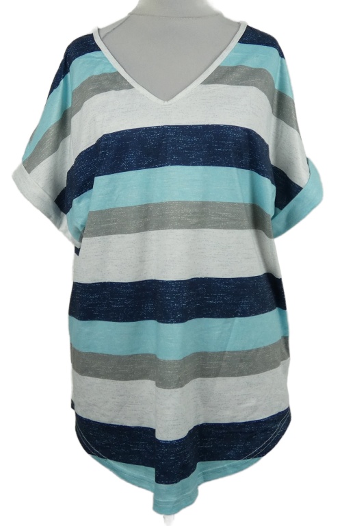 Dámske modro-tmavomodro-béžové pruhované voľné é tričko Shein