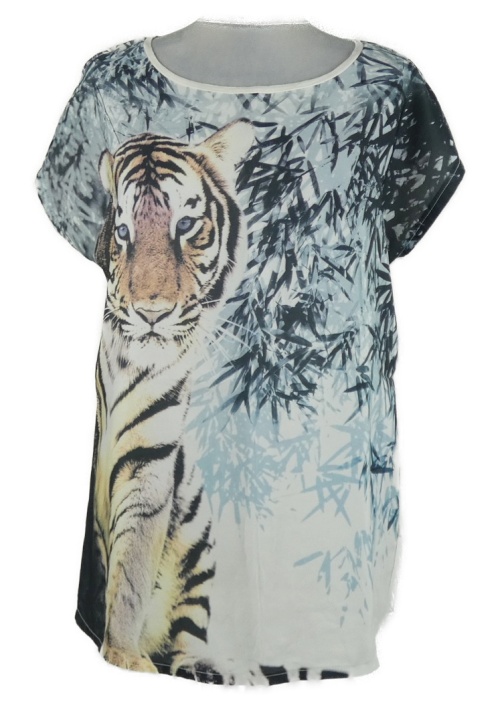 Dámske bielo-sivo-svetlomodré vzorované tričko s tigrom Dorothy Perkins