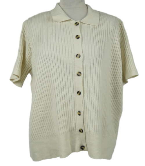 Dámske smotanové rebrované pletené prepínaci tričko s golierikom M&S