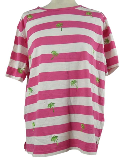 Dámske tmavorůžovo-biele pruhované tričko s palmami