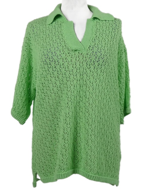 Dámske svetlozelené ažurové pletené tričko s golierikom Zara