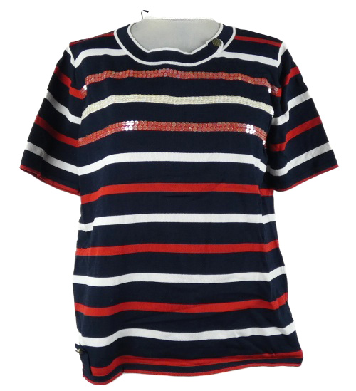 Dámske tmavomodro-bielo-červené pruhované pletené tričko s flitrami Damart