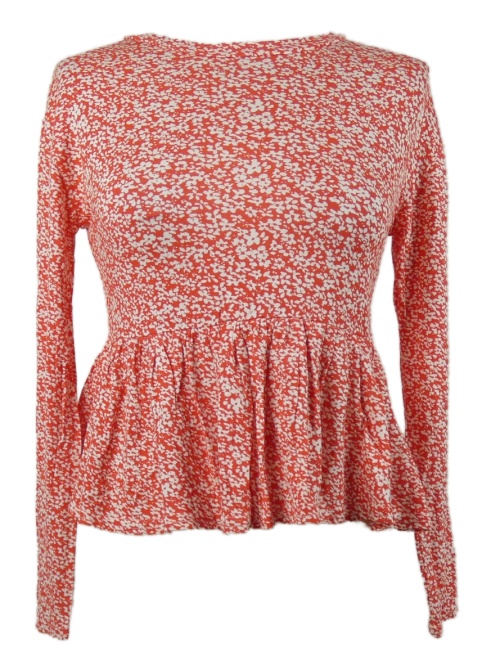 Nové - Dámske červeno-biele kvietkovane peplum tričko