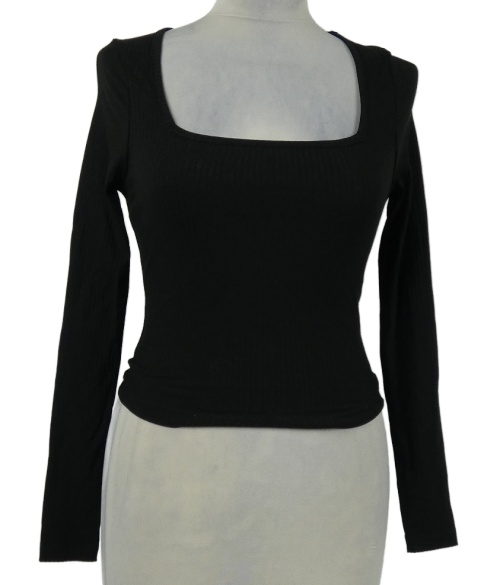 Dámske čierne rebrované crop tričko s hranatým výstřihem Asos