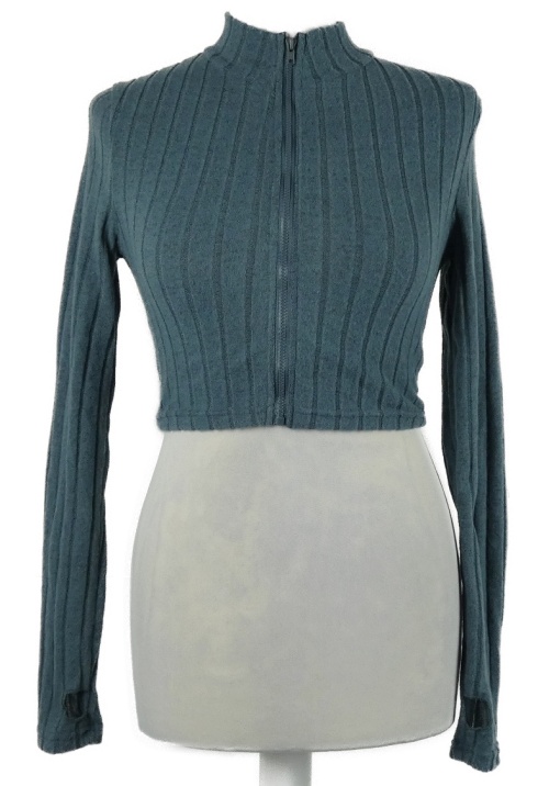 Dámska modrošedá rebrovaná crop prepínaci pletená mikina Shein
