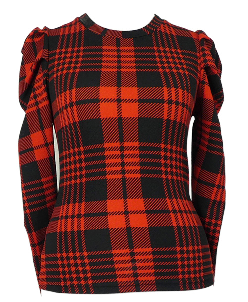 Dámske červeno-čierne kockované tričko s balonovými rukávy Emery Rose