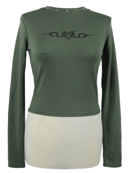 Dámske khaki crop tričko so vzorom a cvokmi Tally Weijl