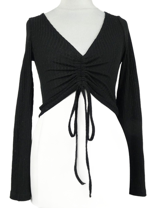 Dámske čierne rebrované úpletové tričko so stahováním Shein