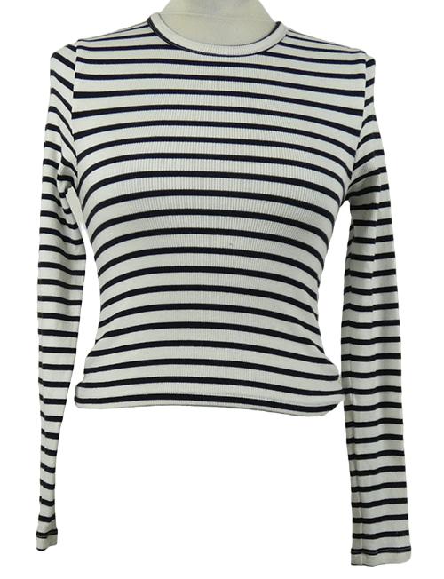 Dámske bielo-čierne pruhované crop tričko Bershka