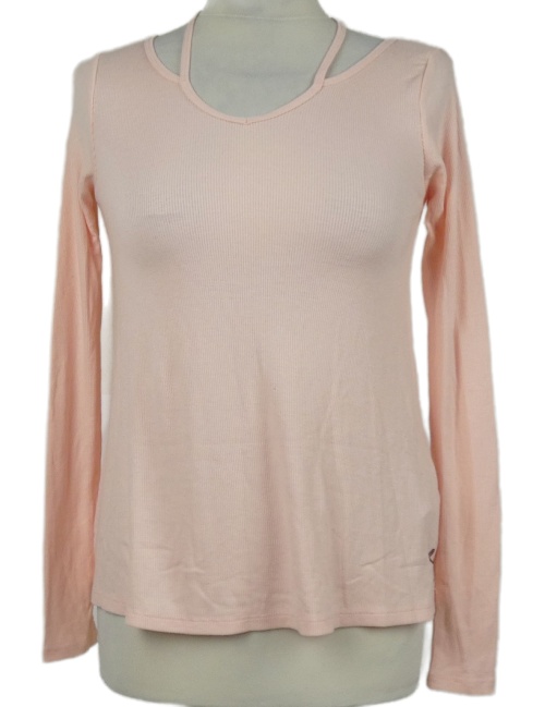 Dámske svetloružové rebrované tričko s prestrihmi Hollister