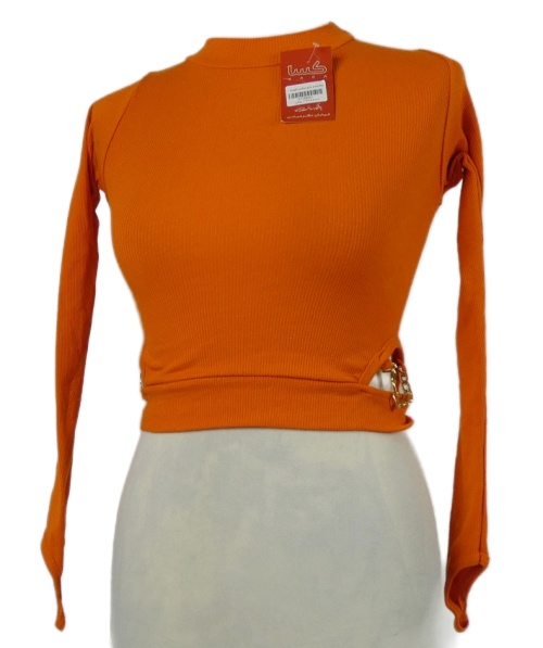 Dámske oranžové rebrované crop tričko s prestrihmi