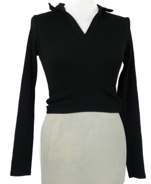 Dámske čierne rebrované crop tričko s golierikom FB Sister
