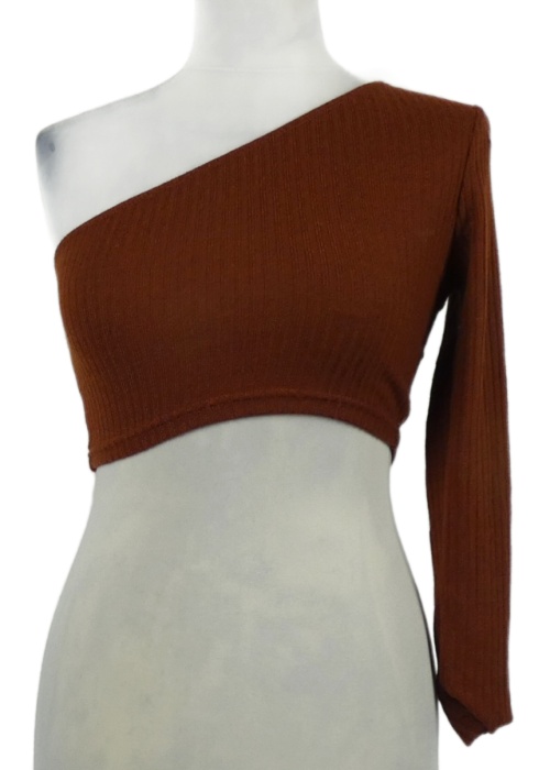 Dámske hrdzavé rebrované crop asymetrické tričko Shein